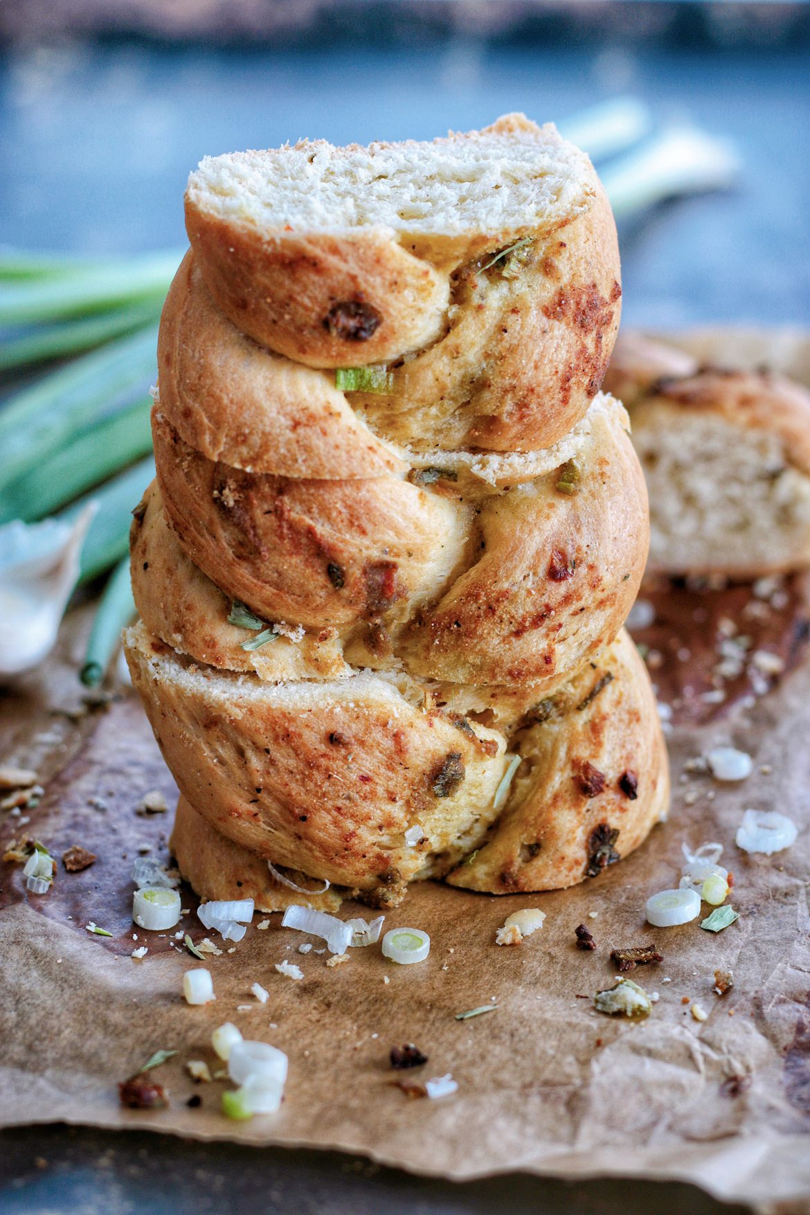 Notre pain au beurre version salée sera pimpé à l’ail, aux cives et moringa.